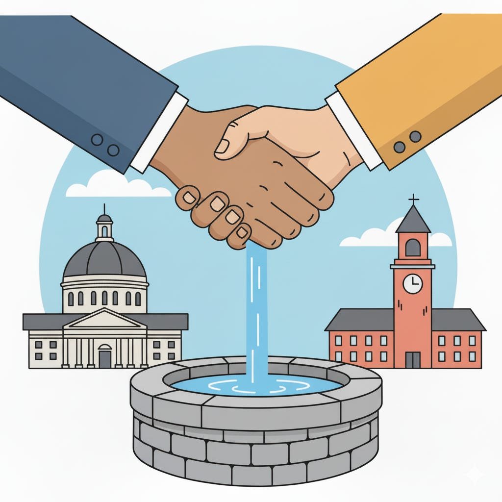 When institutions & the community work together, resources flow into a common well, benefiting everyone & strengthening the town. It’s about mutual benefit & shared responsibility, ensuring a just and equal contribution to our collective future.